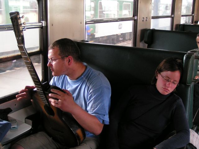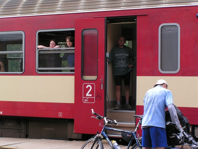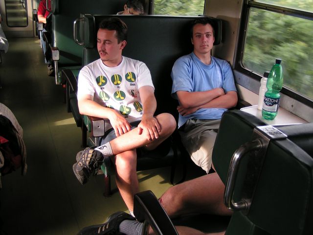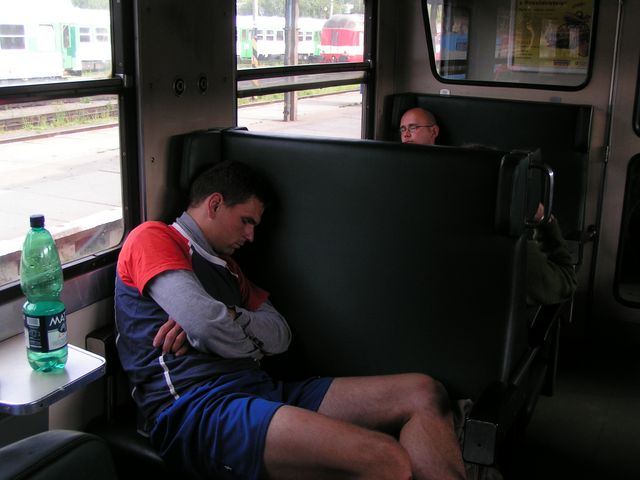 Vstali jsme v pět ráno, i když některým to činilo značné potíže (Martin). V 6.07 odjíždíme vlakem domů. Přestupovali jsme v Havlíčkově Brodě, kde jsme to měli jen tak tak, ačkoli Zdenda tvrdil, že za tři minuty si stihnem koupit i snídani … Pak nás čekal ještě přestup ve Zdicích - osvěžili jsme se v místní nádražce a vyrazili do Příbrami, popř. Březnice či Smetanovy Lhoty. Dobrá zpěvná nálada nás neopouštěla ani ve vlaku!