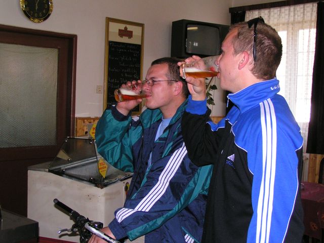 Hospoda v Mnichu: poobědvali jsme a zrovna ve chvíli, kdy jsme odcházeli, začalo pršet … Gročky, fotbálek, slivovice (došla), rum (došel), poličková Tenesee whisky (Jacka Danielse neměli) - tady jsme šli prvně do rizika! Poté, co přestalo pršet a my jsme vypili téměř celou hospodu, odjíždíme. Zastávka v Kamenici - ve zdejším pensionu se kuchaři nelíbila naše Cukrářská bosanova (prý kvůli hostům).