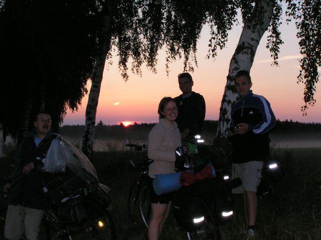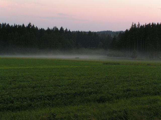 Večer se kocháme padající mlhou a romantický pohled ruší jen běhající pošuk (z kopce - do kopce - snad stokrát!). Dnešní etapa končí skoro za tmy v chatové oblasti u Žirovnice. Milan má krizi, která trvá až do středy (možná za to můžou spálená ramena). Na terase má stará bréca z kiosku zálusk na Tomáše a Martina, rozdává hubičky a jako náhradu nabízí své nezletilé dcery. Spíme u rybníka, kde je zima jako blázen. Milan spal z kopce zaražený o strom.
