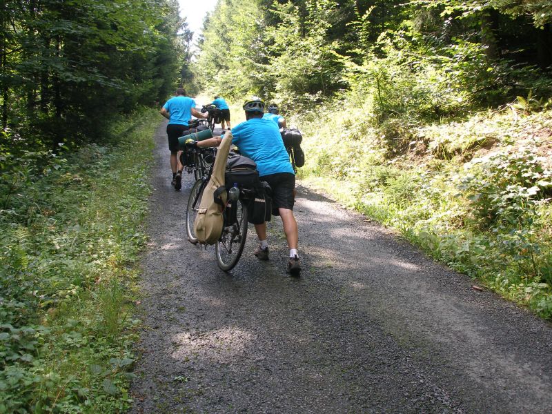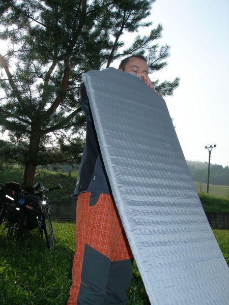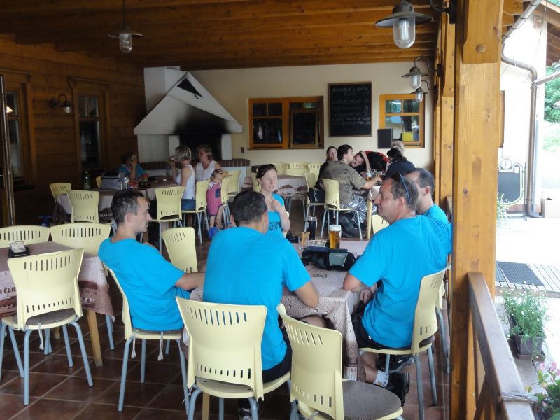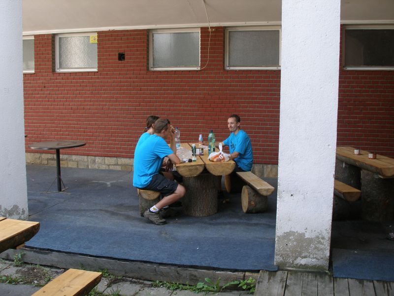 Po sychravém večeru se probouzíme do krásného slunečného rána. Každý si ho užívá jinak: někdo vybírá slimáky z bot, někdo hledá díru (v karimatce). To se však nedaří a tak se Tomáš smíří s tím, že pro tuhle Tůr bude jeho karimatka nejen samonafukovací, ale taky samovyfukovací. Po sbalení dojedeme k místnímu obchodu, kde doplníme zásoby potravin a na bytelných dřevěných stolech před jakousi zpustlou restaurací posnídáme.