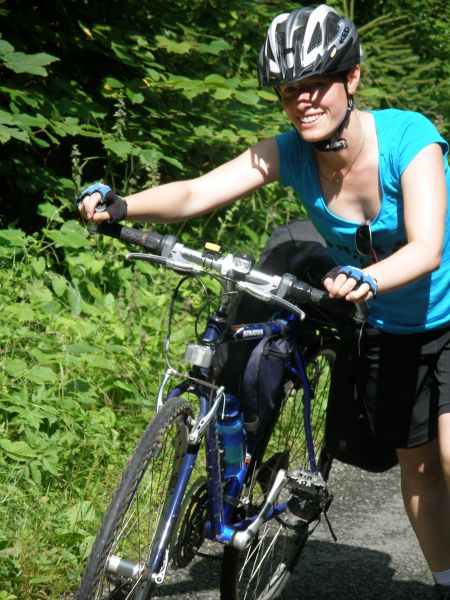 Pak již vyrážíme na posledních pár kilometrů po naší staré známé cyklostezce „Bečva“ směrem na Vsetín. Před Vsetínem se s ní nadobro rozloučíme a tím končí sranda. Ze začátku to ještě jde, silnice mírně stoupá přes roztahanou podhorskou obec Semetín, ale za posledními chalupami se před námi objeví stoupání, do kterého máme problém naložená kola i vytlačit. Když se dostaneme výš, tak nám dřinu zpříjemňují alespoň krásné výhledy na okolní kopce a údolí. Po překonání hřebene sjíždíme do Lhoty u Vsetína, kde si na příjemné zahrádce restaurace Kameňák dáváme zaslouženou tekutou odměnu.