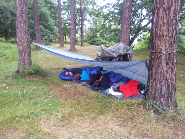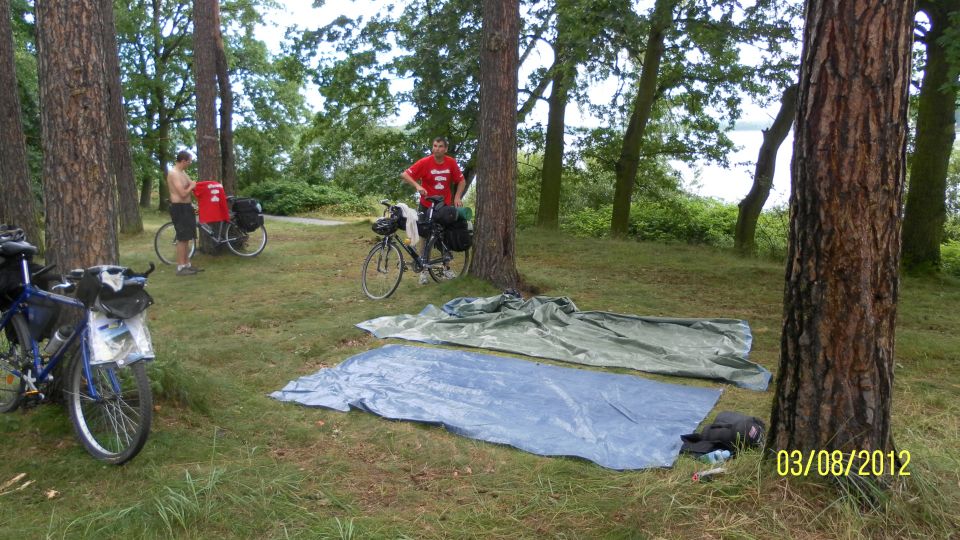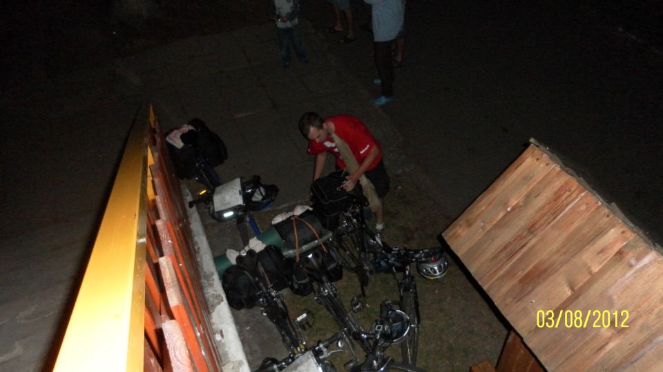 Popojíždíme do nedalekého Štědronína.K večeři si dáváme pár plzniček.V přilehlém sále duní staré i moderní hity ..Právě vrcholí zakončení jednoho prázdninového turnusu . Martin s Tomášem ještě dávají koupačku ala Adam & Malysz a jdeme chrupat do nedalekého lesíka.