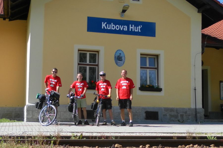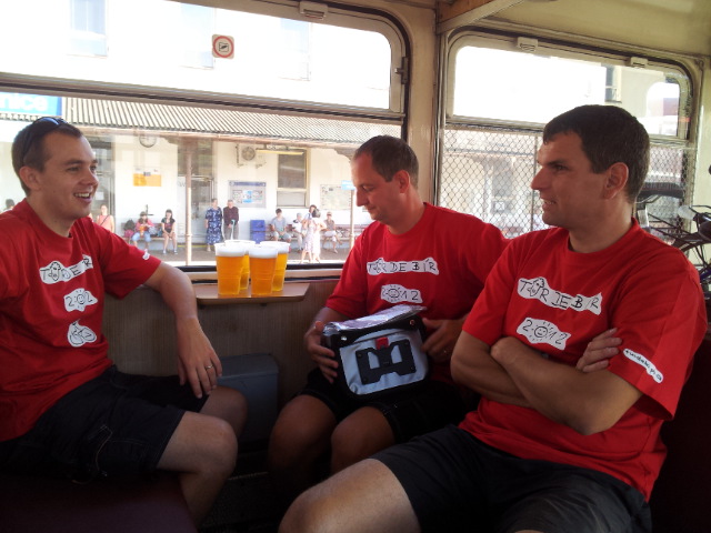První den dalšího, již jedenáctého, ročníku slavné TdB začal v 6:30 na příbramském vlakovém nádraží, kde se sjela celá naše parta ve složení: Martin, Milan, Petr a Tomáš. Po zakoupení jízdenek nastupujeme do vlaku směr Březnice a Blatná. Oblečením letošních dresů a přípitkem vychlazeného "kozlíka" v plechovce byl letošní ročník oficiálně zahájen. Oproti minulým ročníkům se o pořízení dresů postaral Tomáš, a moc se mu to povedlo. V Březnici přestupujeme do druhého (nově připojeného) vagónu, protože ten náš v Blatné končí a my potřebujeme dojet až do Strakonic. Ve Strakonicích kupuje Milan jedno do kelímku a přestupujeme na další vlak, který nás odveze do Kubovy Hutě.
