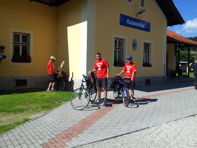 Trasa: 93 km, Vlakem z Příbrami do Kubovy Hutě, na kole pod Lipenskou přehradu do Loučovic.