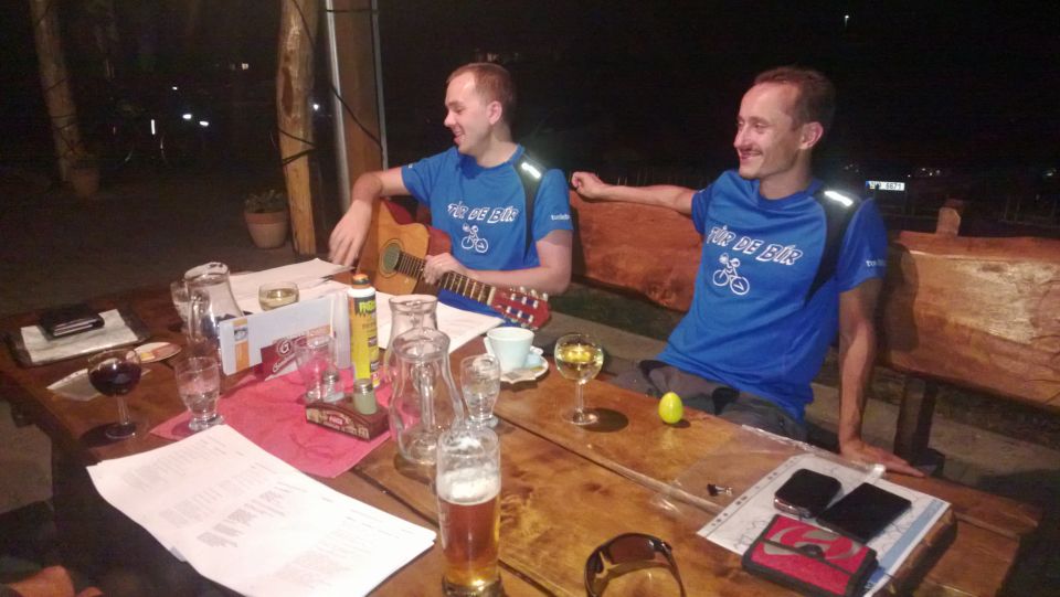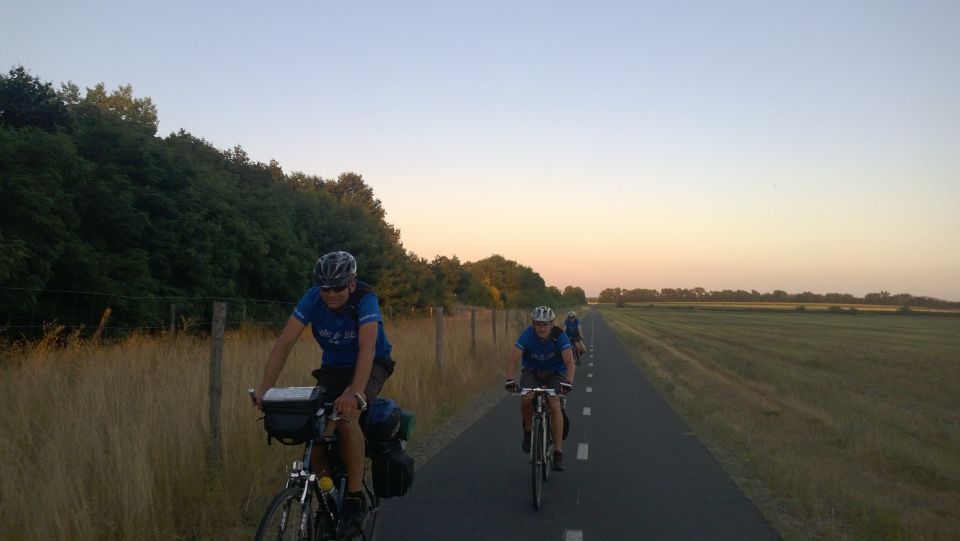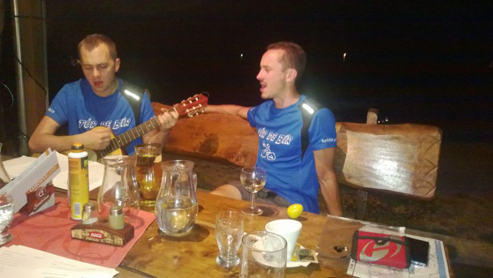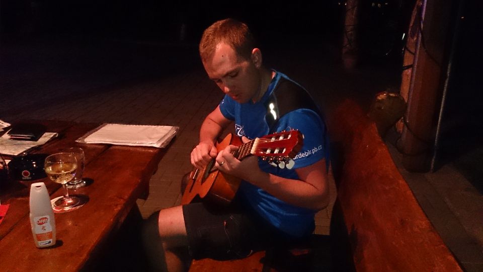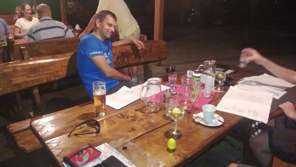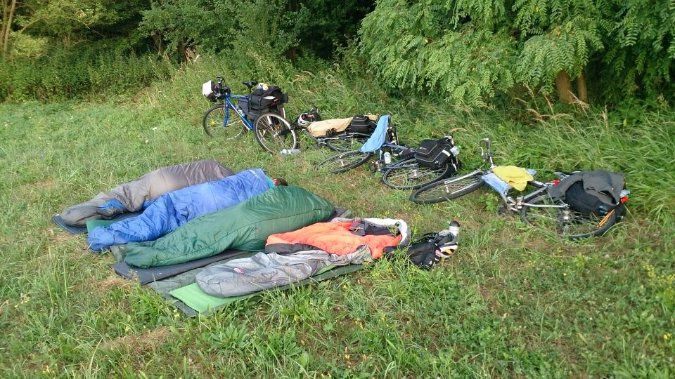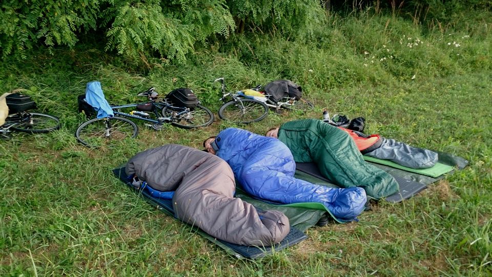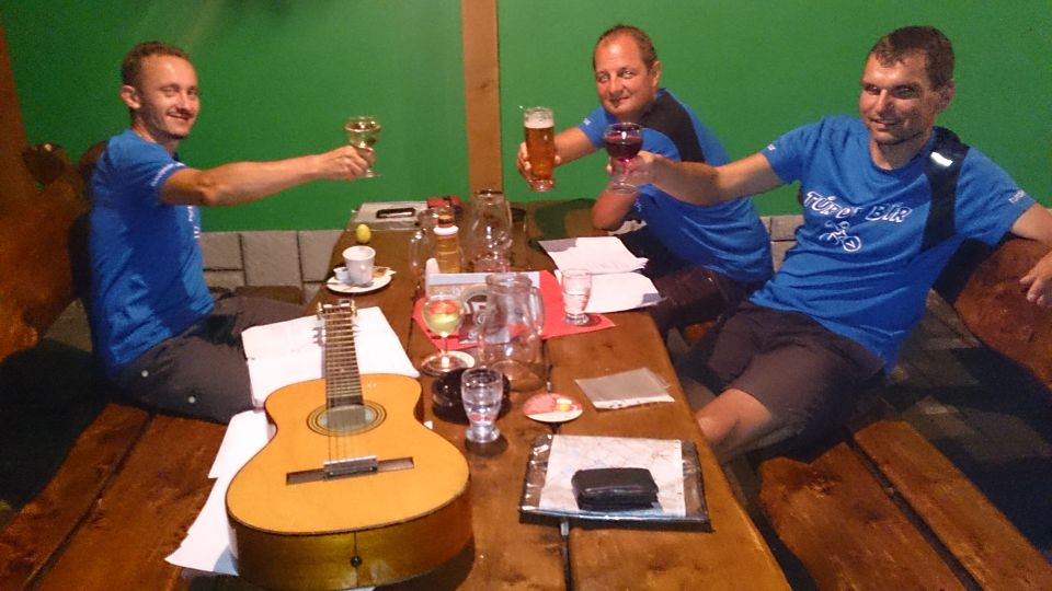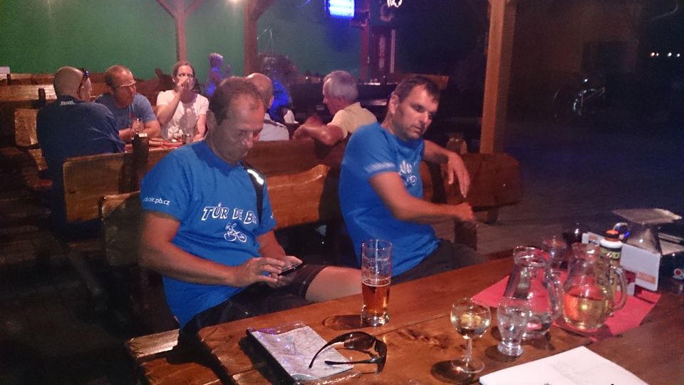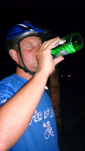 Je teplá noc a nám se ještě nechce spát. Hospoda zavírá, ale pozorná servírka nám ještě přináší ke stolu poslední džbánek vína. Po jeho dopití sedáme na kola a jedeme hledat místo ke spánku k nedalekému bunkru.