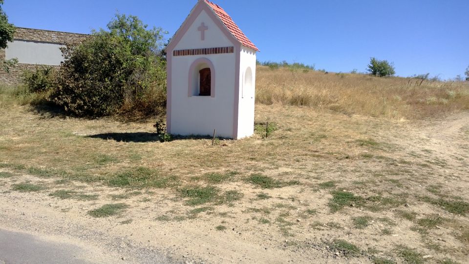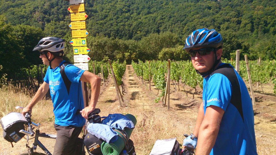 Snídani si vychutnáváme přímo před obchodem pod slunečníkem na dřevěné lavici. Protože je po ránu už pěkné horko, Petr si dává již ke snídani jednoho dobře vychlazeného Hostana. Po naplnění žaludku vyrážíme dále směr Horní Břečkov – Lukov – Podmolí. Zde vjíždíme do národního parku Podyjí. Před námi se rozprostírají krásná přírodní panorámata a začíná zde kraj vína.