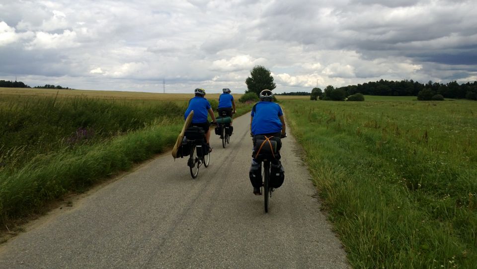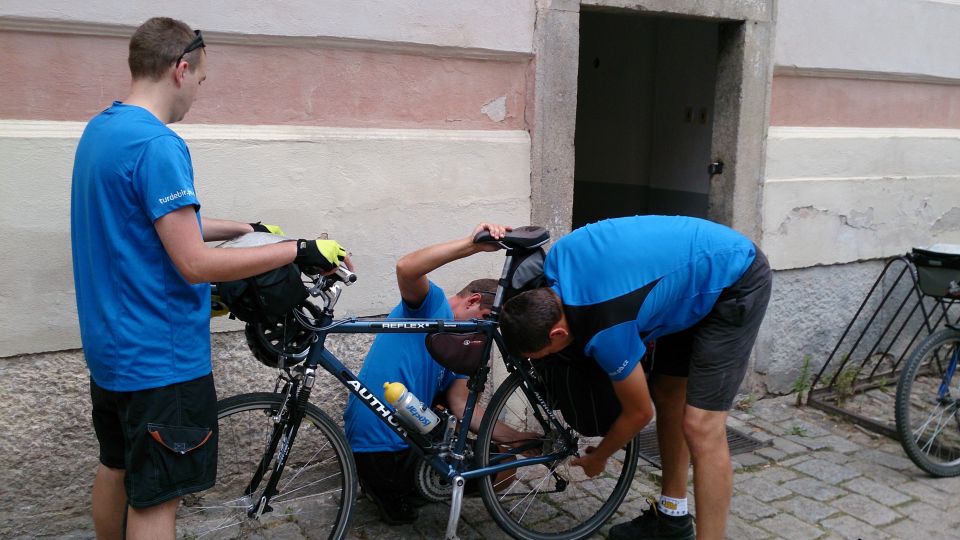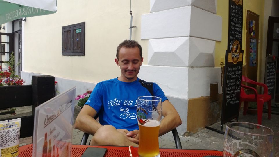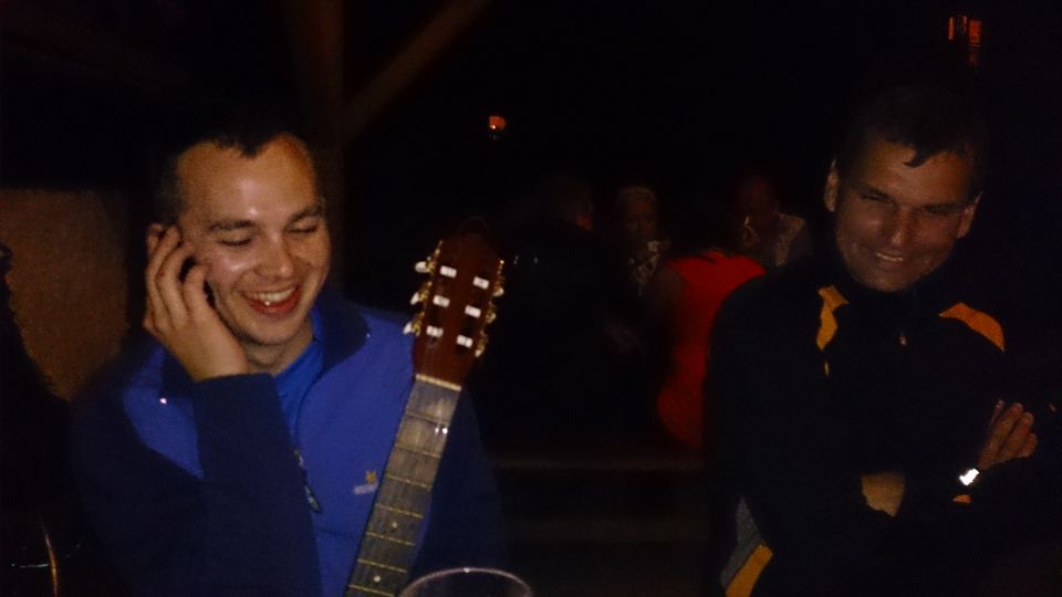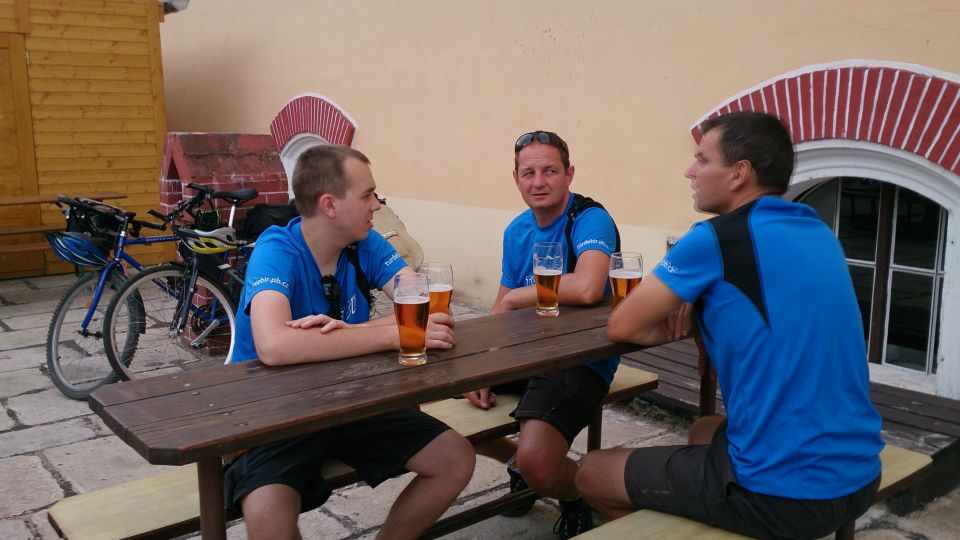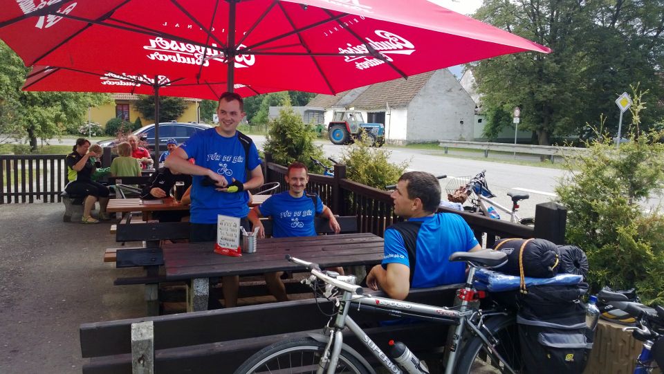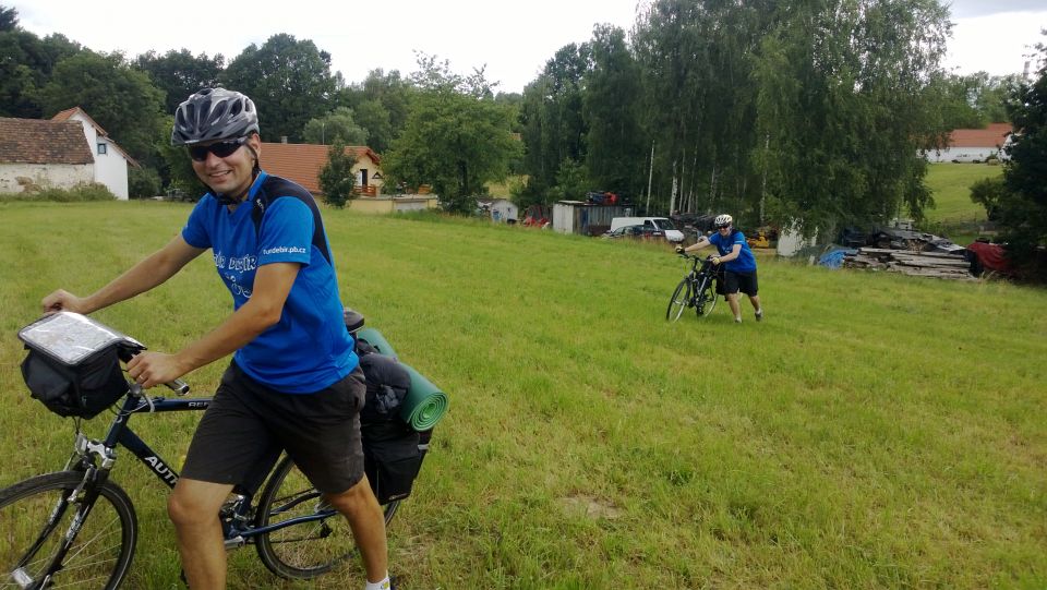 Tak svižně jak jsme den začali, tak i končí. Loučíme se s majitelem, který si s námi ještě dává rundu. Nakonec jsme rádi, že se na vlastních kolech a celí dostáváme na louku, kde budeme spát. Funkční trička nyní přebírají úlohu pyžam. Na víc dnes nikdo nemá sílu. S usínáním nikdo nemá problém, přítel alkohol vykonal své. Poslední co si pamatuji je krásná noční hvězdná obloha. Snad se zítra nebudeme moc trápit :-/. „Brou“