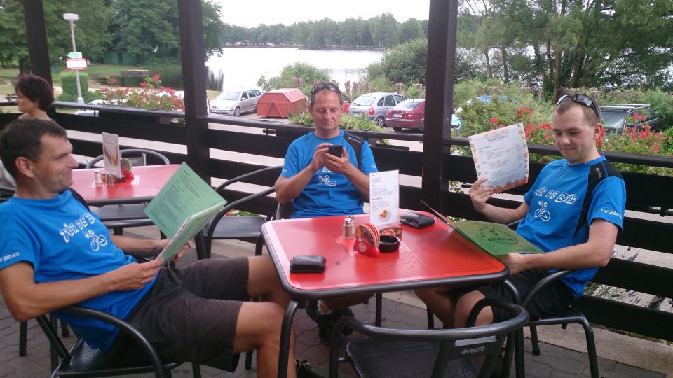 Poté co Tomáš neúspěšně dojednává množstevní slevu v českobudějovickém WC vyrážíme chodníkovou variantou na JV Českých Budějovic. Všude kolem je malebná příroda. A nejen ta, díky tomu, že jsme na chvilku zakufrovali, jsme měli možnost si prohlédnout krásný radar :-). Přes Rudolfov a Libín, kde si dáváme oběd směřujeme do Třeboňe. Martin je letos neuvěřitelně nadupanej a asi právě proto mu praská drát v zadním kole. Mění ho v Třeboni v jeho oblíbeném cykloservisu (měnil zde pár věcí již před lety, inu stálý zákazník :-)). Pak se vydáváme na pivo do Chlumu u Třeboně. Dále překračujeme česko rakouské hranice a užíváme si rakouské pohraniční šotoliny .