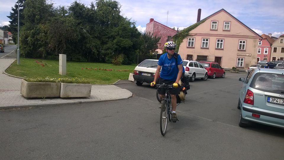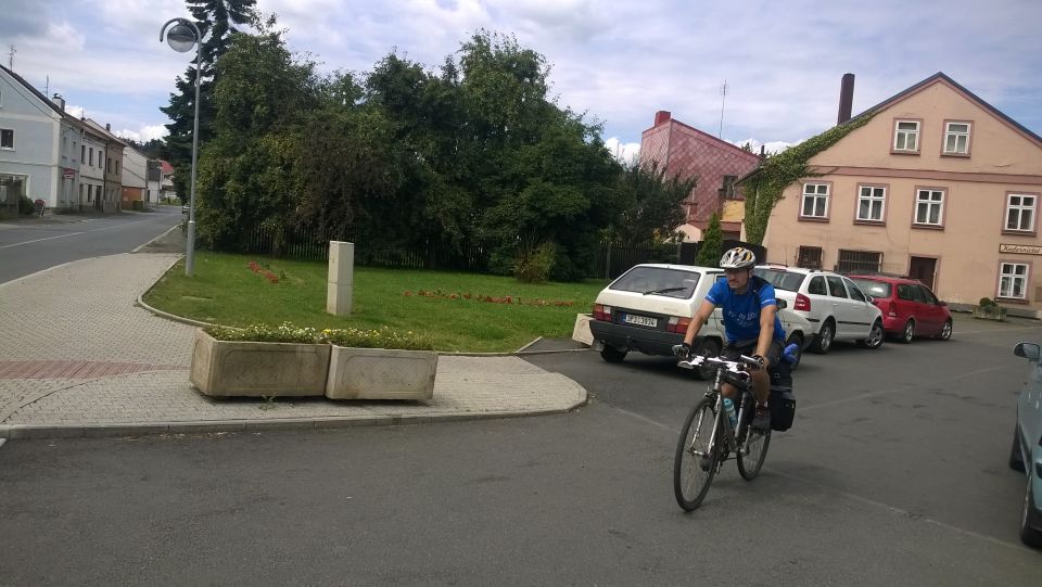 Posilnění na další cestu vyrážíme s již opravenou Petrovou šlapkou do cca 20km vzdáleného Boru, kde po zevrubné obhlídce možností na místním náměstí shledáváme, že žádná z nabízených alternativ nám není dost dobrá a vůl dne zařizuje zprovoznění zavřené terásky před místním hotelem, kde si dáváme oběd a něco málo žejdlíků, jako ochranu před neustálým polojasnem. Po několikerém vyslechnutí zprávy místního rozhlasu hlásajícího přibližně "Raz, dva, tři, zkouška, zkouška. Kdo tuto zprávu neslyší, ať to nahlásí na úřadě." jsme pro nás shledali Bor nadále nezajímavým a vyrážíme zase o kus dál. Počasí je parádní, žádná vedra ani déšť.