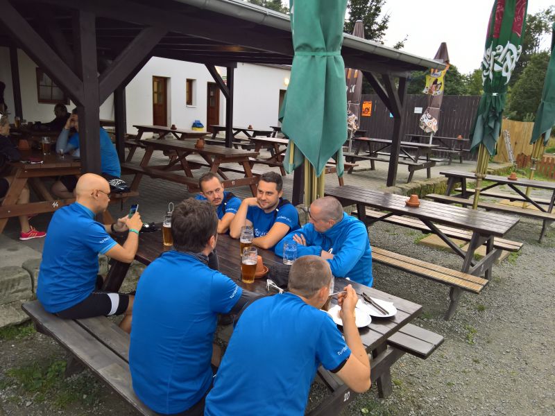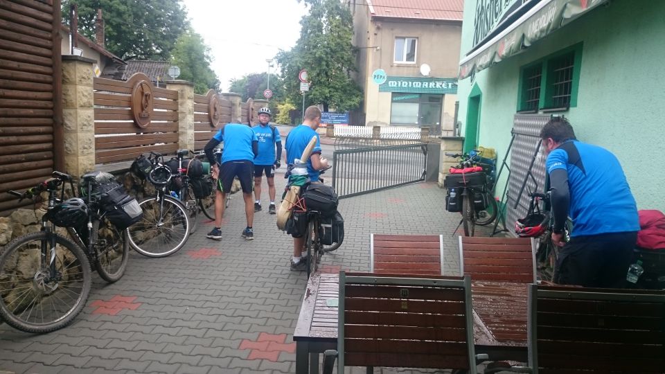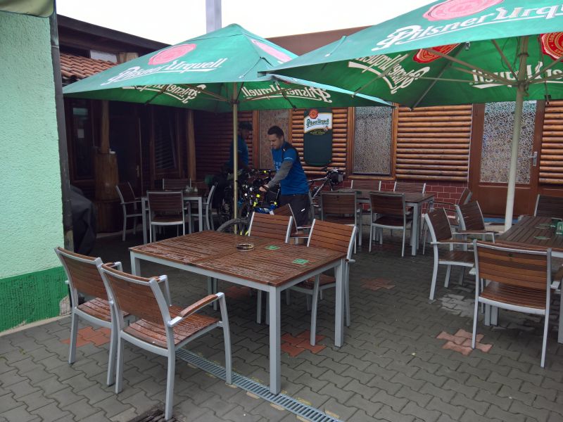 Vydáváme se opět na cestu zdolávat malé, ale i velké kopce před námi. Vzhledem k tomu, že už se blíží čas oběda, zastavujeme v kempu u vesnice Dolní Bukovina. Je to ostatně jediné místo, kde se vůbec můžeme najíst. Celkový vzhled restaurace jménem „ RAVETA“ nás teleportoval zpátky do minulosti tak o 30 let. Jídlo je však dobré a výběr ze dvou druhů prakticky dostačuje.