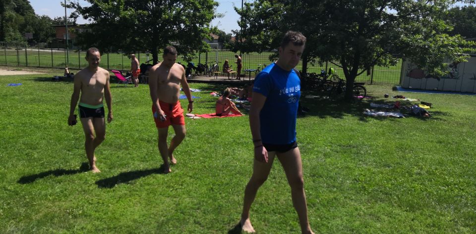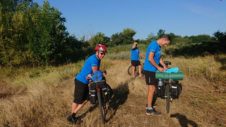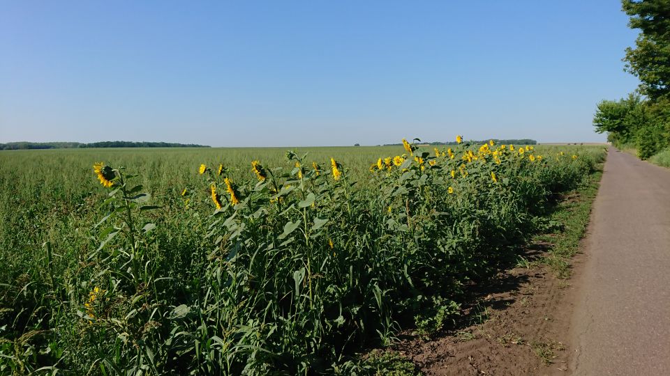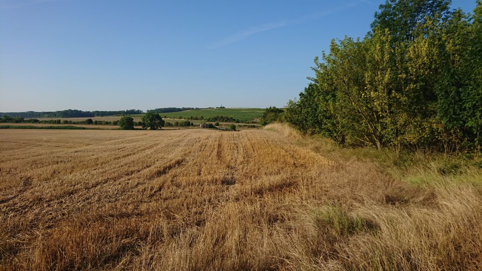 O probuzení do druhého dne se postaral Ferenz Termit a jeho gang, kteří přes nás stavěli mravenčí dálnice, úmorné sluníčko, co nám už od rána chtělo naznačit co si chystá a příbuzná sojky bonzačky z Krakonoše, co se nás držela a řvala snad po celý letošní TDB. Zjišťujeme, že jsme při nočním příjezdu netrefili jednu odbočku a slibované místo na spaní ve stínu u bunkru je od nás asi 300m po poli níž. Dnes to vypadá na pěknou smažbu, takže žádné dlouhé rozjímání, balíme a vyrážíme na snídani do Novosedel. Při snídani v parčíku před sámoškou se probere nástřel trasy a také se nakousne volba vola. Leč nemaje zásluh z předchozího dne, kterými by byl vůl automaticky nominován, nakonec nikdo navržen nebyl a s absolutně spravedlivou aplikací pro náhodný výběr, kterou jsem již třetím rokem nabízel, z nepochopitelných důvodů nikdo nechtěl nic mít. Vyrážíme tedy bez vola v ústrety parnému dni.
