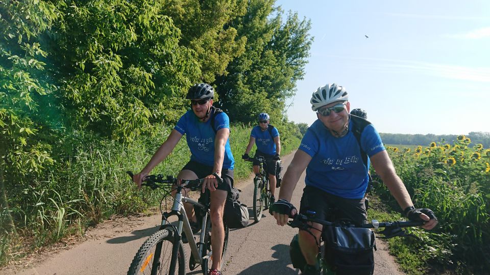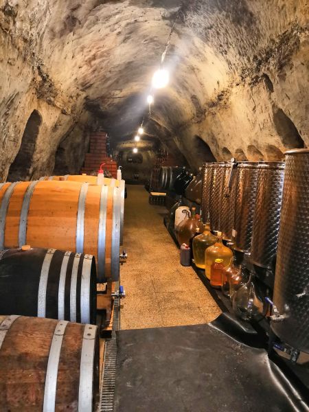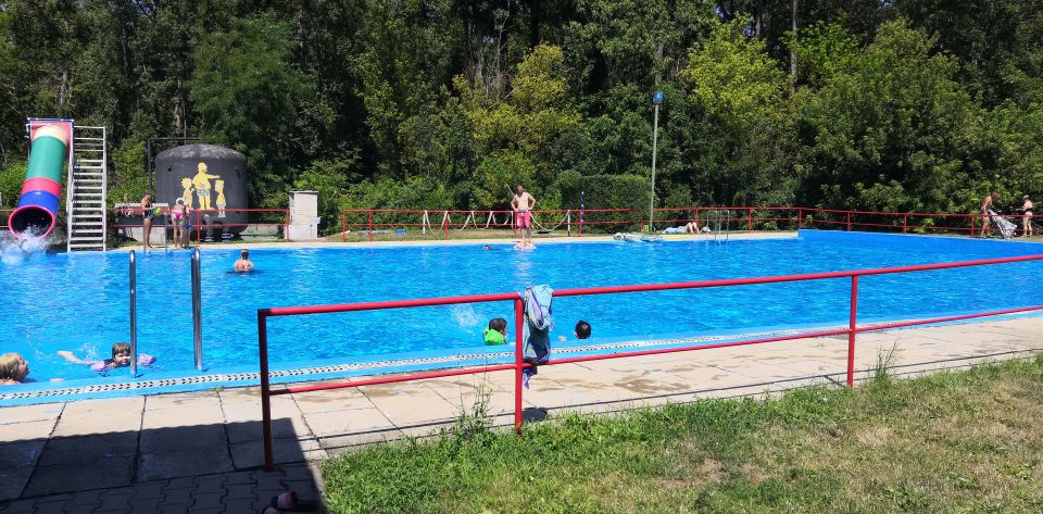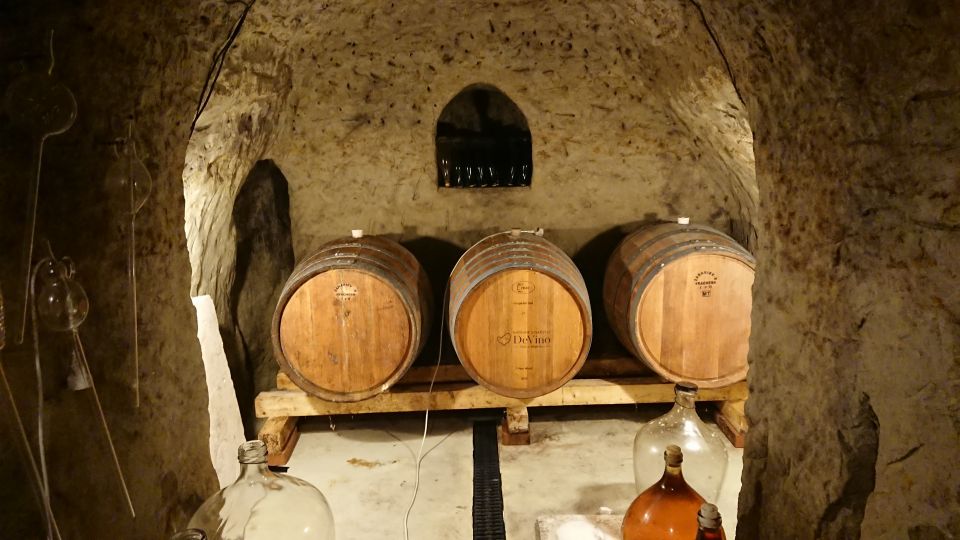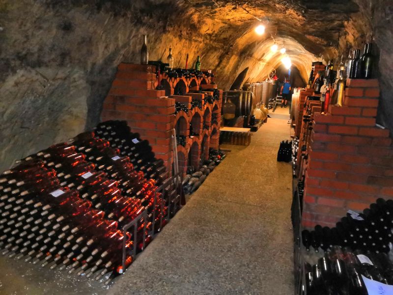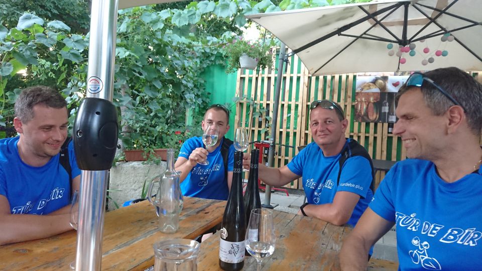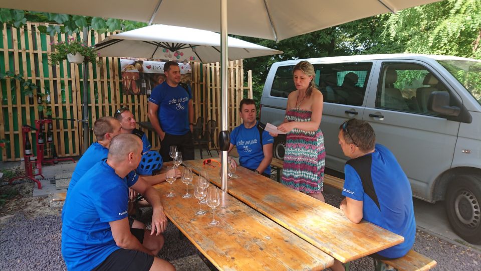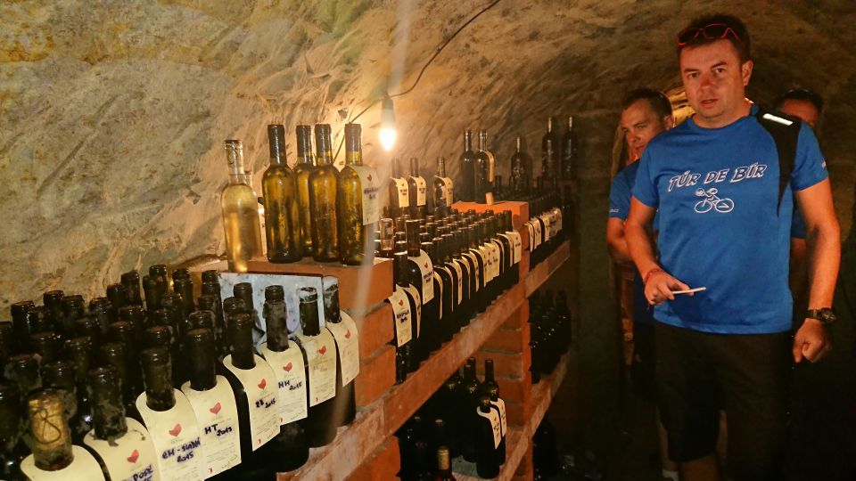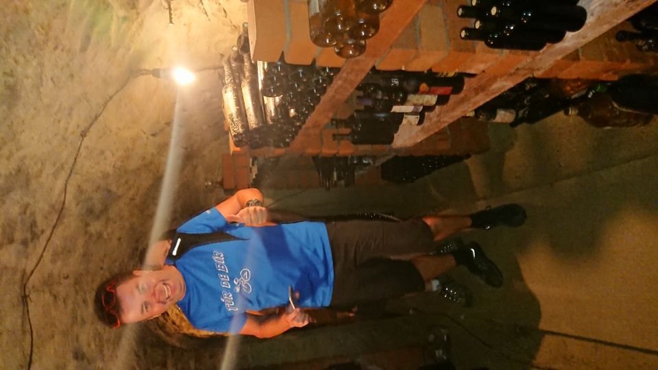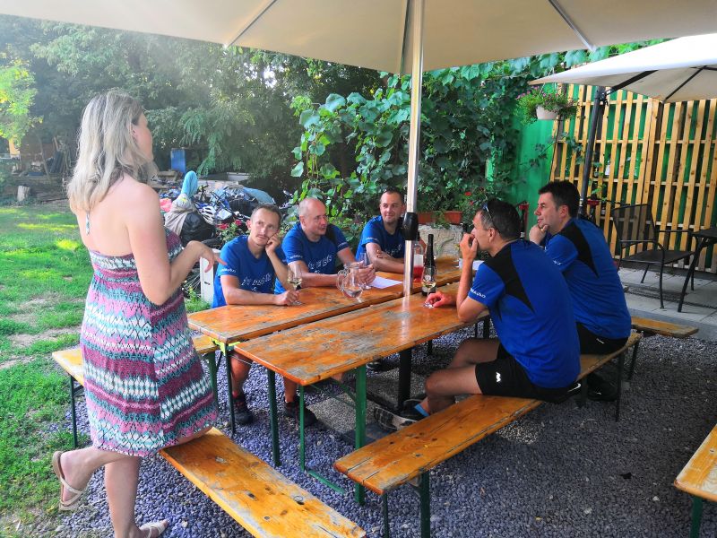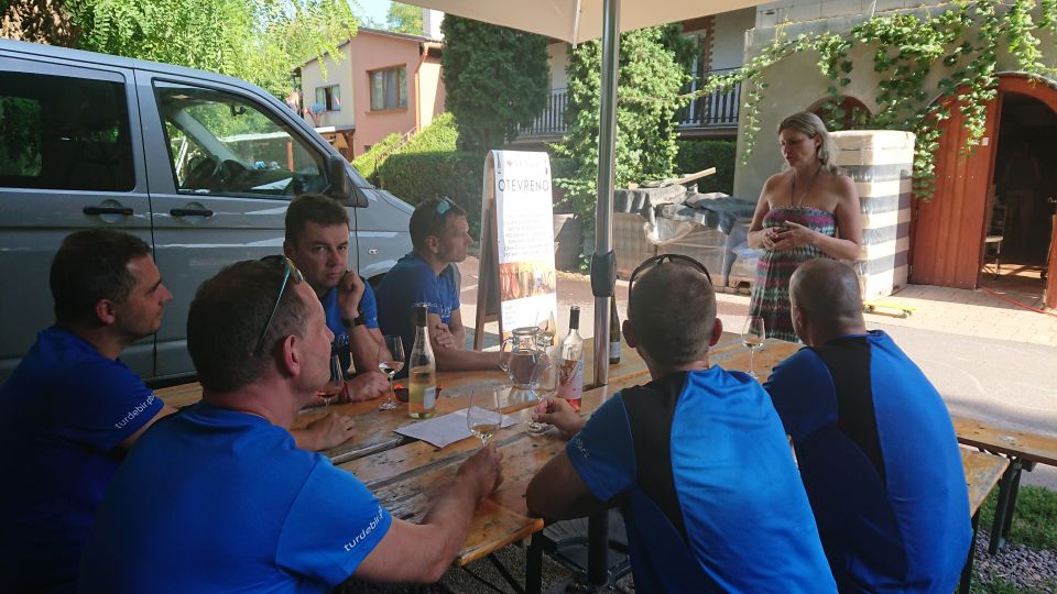 Takže v hlavní otázce dne máme konečně jasno, pupky plné k prasknutí, platíme a jedeme dál. Ale co to? Venku je vedro, že bys velblouda do pouště nevyhnal a námi těžce nastřádané tekutiny se hned po překročení prahu penzionu začínají povážlivě vypařovat. Naštěstí je ve Vrbovci i přírodní koupaliště, takže volba programu na několik dalších hodin, než opadne to nejúmornější horko, je jasná. Koupaliště je vážně bezva. Vodička jako kafíčko, pivíčko jako křeníček, štěňátko jako koťátko… Ale co naplat, každá zábava jednou končí a je potřeba taky šlápnout do pedálů, protože to letos na velké hltání kilometrů nevypadá, a tak se každá minuta v sedle počítá. Ha, kilometrů nebylo ani pět a nás najednou vcucává sklípek DeVino v nedalekých Chvalovicích. Tož zme na Moravě, tak koštnem, ne? V posezení před sklípkem si vyslechneme, že tu prodávají víno s příběhem, okoštujeme pár lahviček, někteří vyrazí i na prohlídku sklepa (mimochodemvelmi příjemné ochlazení) a taky se seznamujeme s podobnou partou bláznů na kolech odněkud kolem Ostravy, co se vyrazila smažit do moravského slunečného pekla jako my.